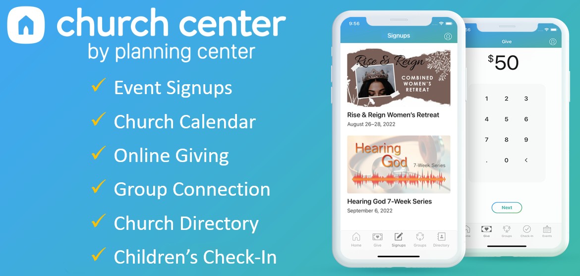 - Download the Church Center app from your mobile app store (Google Play for Android or App Store for Apple).